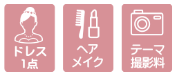 【内容】ドレス1点・ヘアメイク・テーマ撮影料・データ1カット
