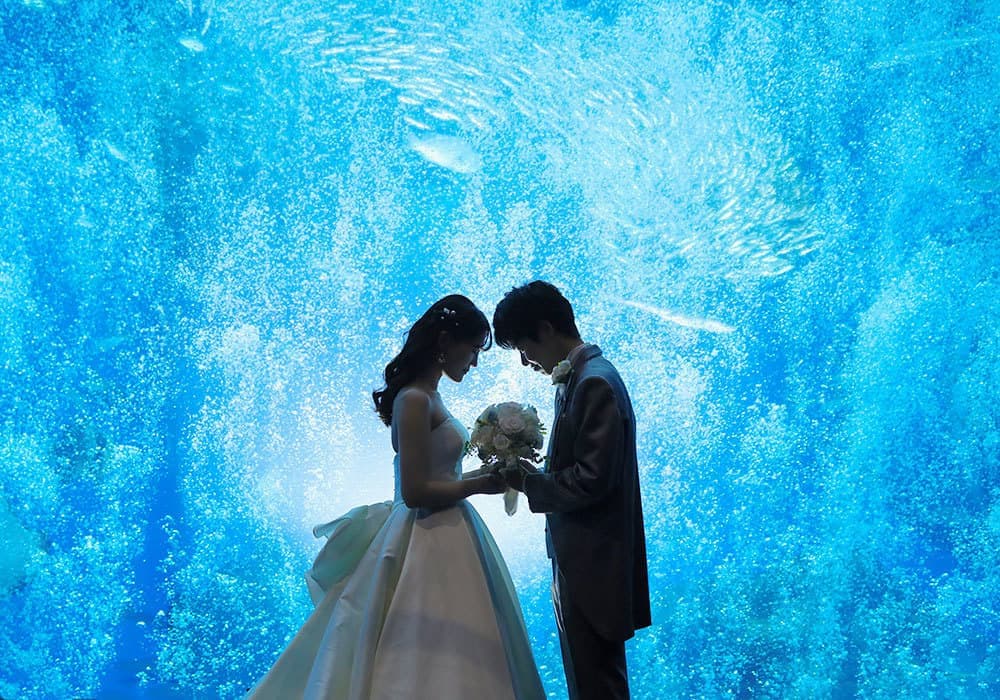 大水槽やイルカの水槽の前でのショットは幻想的で人気です。空調の効いた快適な空間で季節や天候を問わず撮影できるのも魅力です。