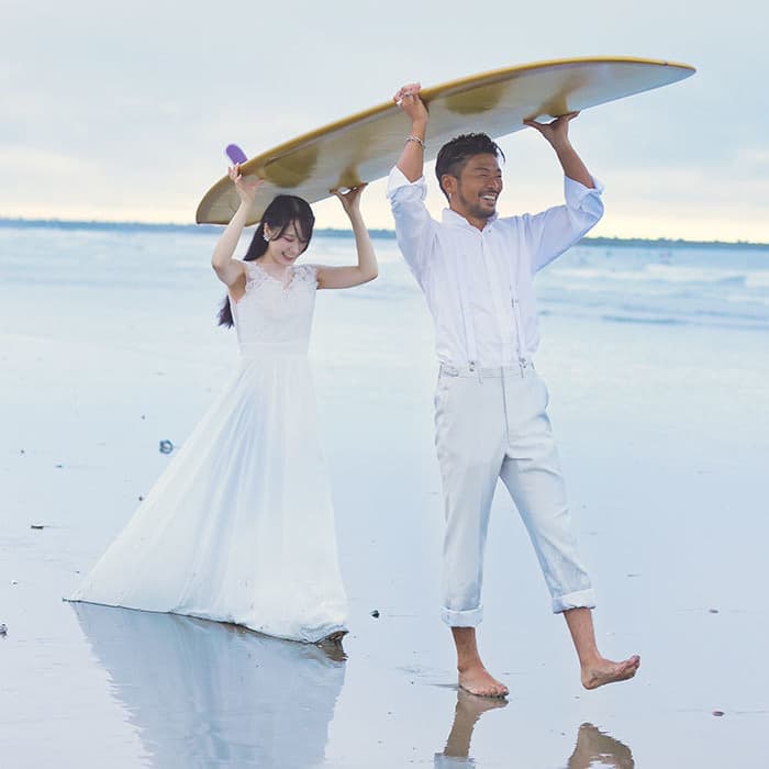 ふたりの影が水面に反射して、「ウユニ塩湖」のような幻想的な写真が撮れます。